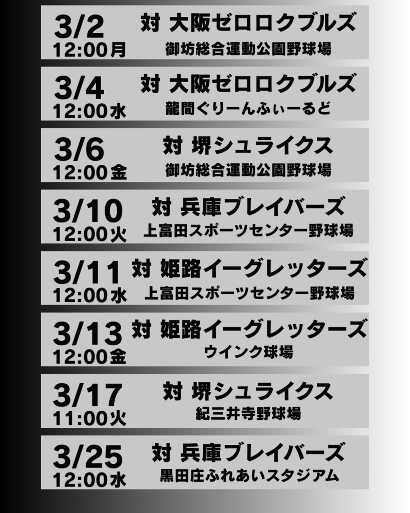 ※3月17日の堺シュライクス戦はビジターゲームとなります